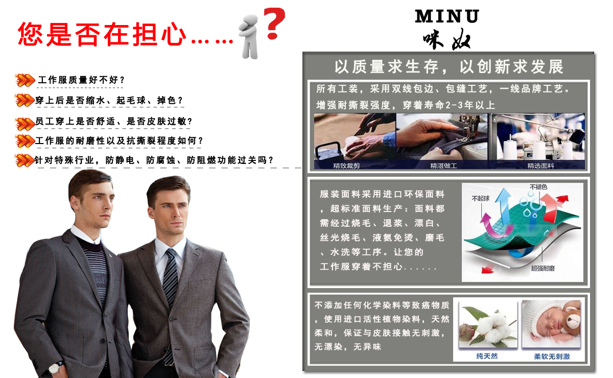 业内首家拥有企业形象设计顾问团队,为每一家合作企业提供一对一式的企业员工形象塑造设计,让您的工作服更有企业文化。
